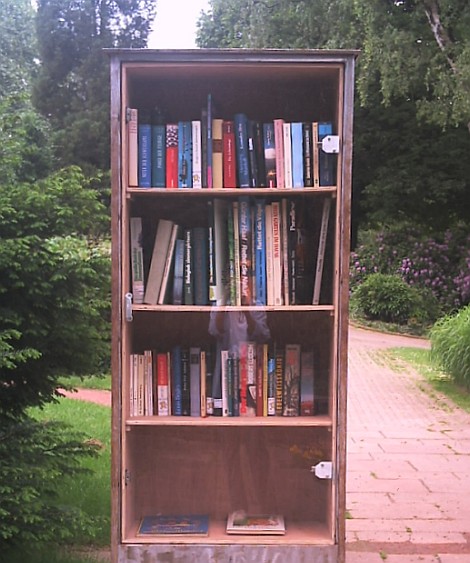 Diese neue Büchervitrine sah ich heute im Botanischen Garten Solingen. Für mich ein weiterer Grund für einen Besuch dort.